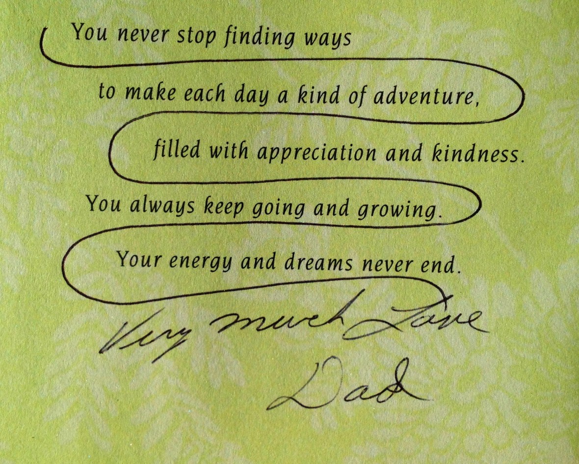 Sometimes I’d open the card, read the words and feel their comfort. And comfort they still bring, though I no longer carry the card in my car. I keep it safely tucked away for moments I need reminders of him.