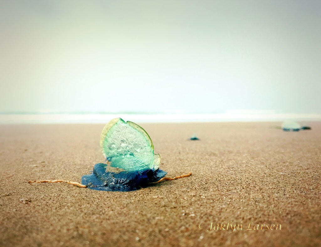 Known as by-the-wind sailors, Velella wash up on beaches in abundance during the spring. Photo by Jaklyn Larsen