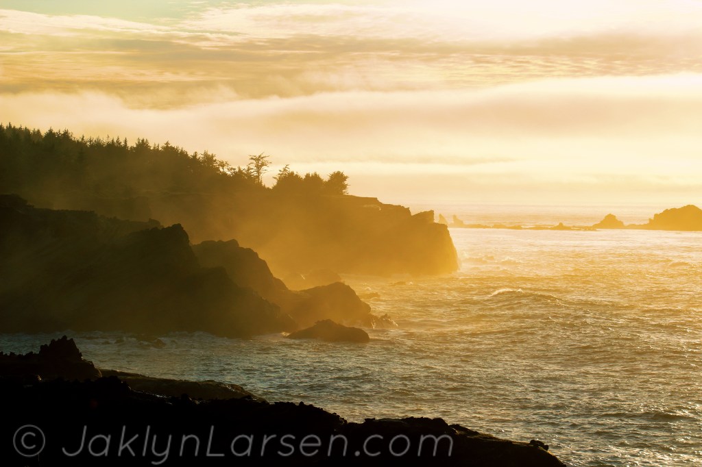 Golden hour at Shore Acres State Park, Coos Bay, Oregon.