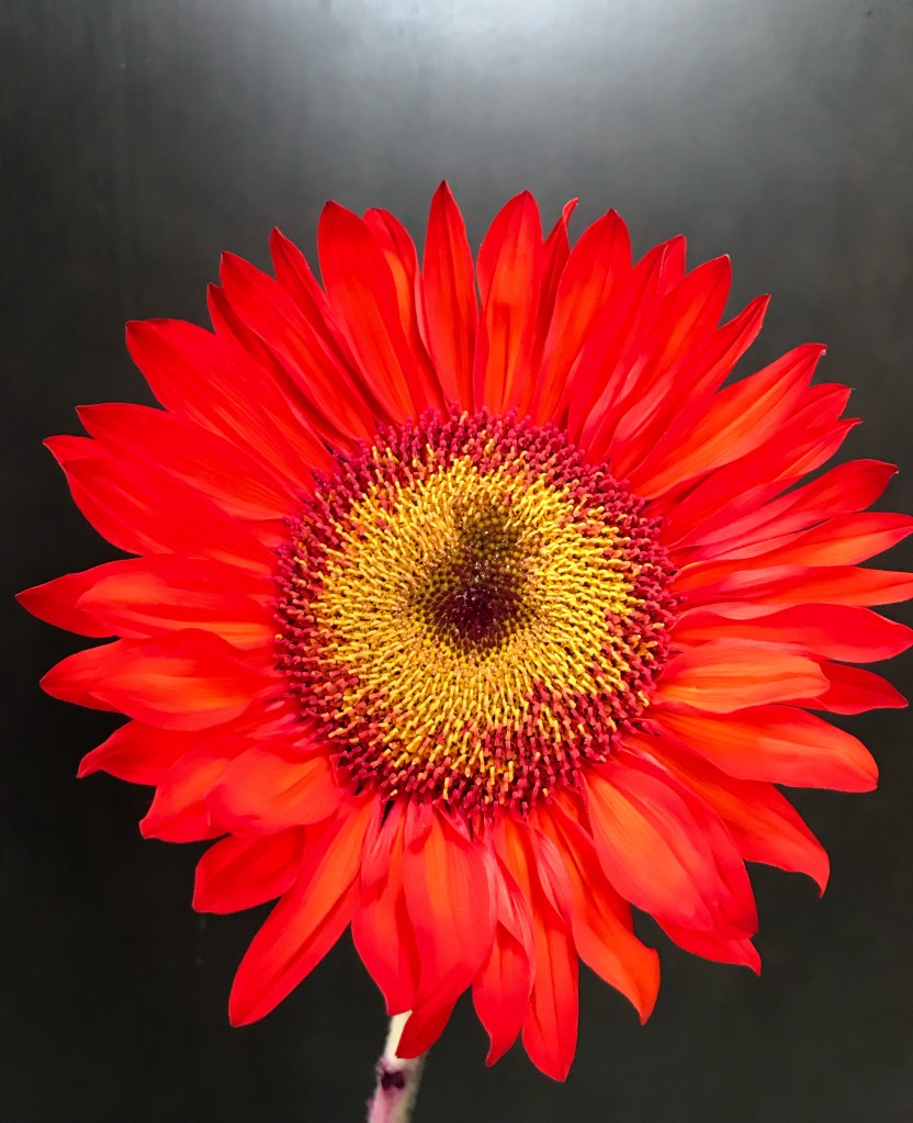 A few days ago I tried to take a photo of a bouquet a dozen times, but nothing came together as I envisioned it. I then tried fewer flowers, a single flower, I changed up the lighting, but even the lone flower appeared drab. With a light backdrop, everything well-lit, it should have come together as a beautifully composed photo, but it didn’t. And that’s when I realized, I didn’t need different lighting. I needed something that would showcase the fiery petals of the sunflower. I needed something to allow its bold elegance to shine.